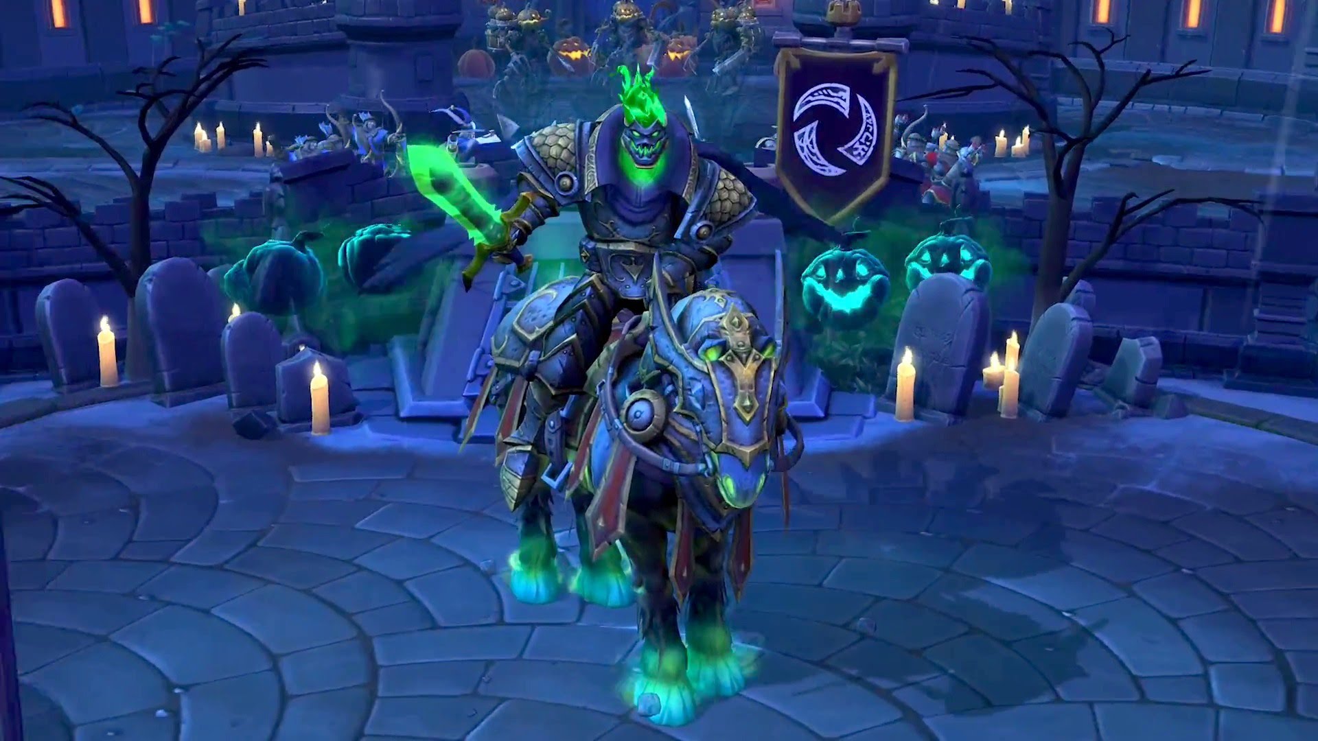 Instead of the traditional approach teams have to capture and control various towers and altars scattered through the map, which in turn deal damage over time to your opponent's core. The map's boss appears in the form of the popular World of Warcraft 'Hallows End' NPC, the Headless Horseman. Once defeated, he too deals extra damage to the enemies core.